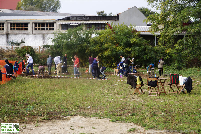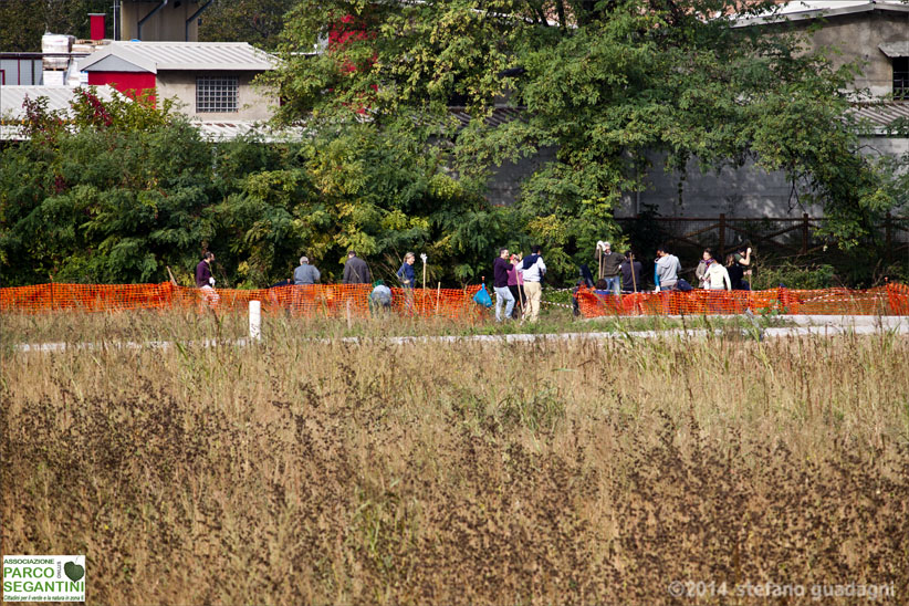 Il Parco è ancora una prateria selvatica, ma… chi sono tutte quelle persone là in fondo? Siamo noi! Già al lavoro…