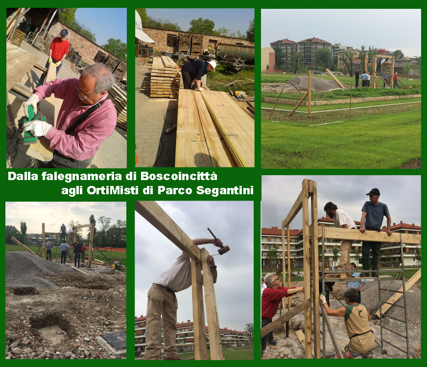 Interamente progettata e realizzata dai volontari dell’associazione, e con il prezioso e generoso aiuto degli amici di BoscoInCittà, ecco che la grande pergola sta cominciando a sorgere sul quadrato centrale del primo giardino edibile.