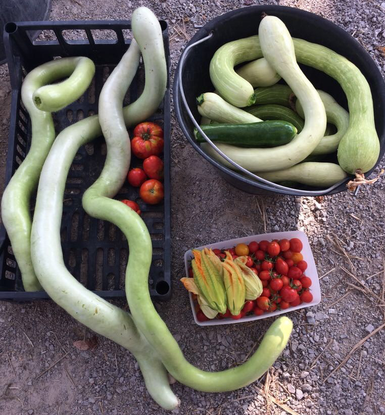 Gli orti, grati, rispondono con una continua produzione, che in agosto è stata superiore alle possibilità di consumo da parte soci ortisti presenti (4 o 5), la cui eccedenza è quindi stata settimanalmente devoluta all’associazione Pane quotidiano che la ridistribuisce ai meno abbienti. (raccolto e foto by Laurence)