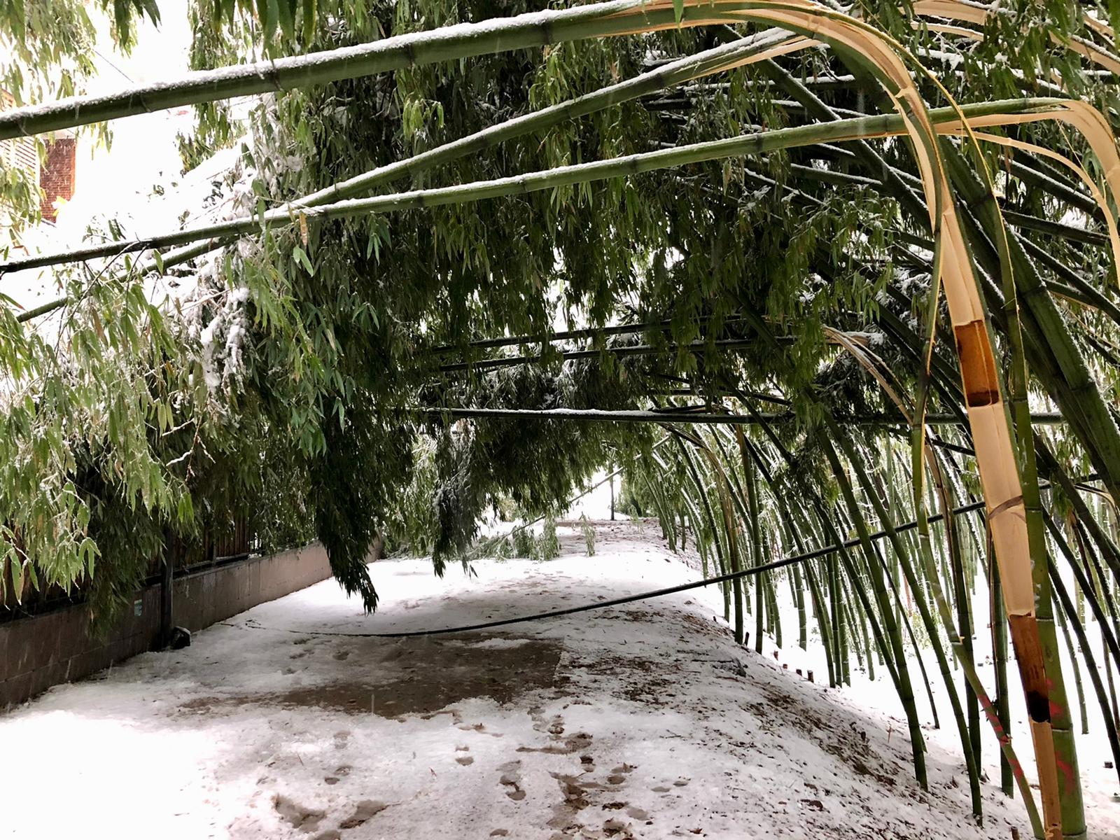 La nevicata dei giorni scorsi, oltre a regalare al parco un bel manto bianco e tanti pupazzi di neve per la gioia di piccoli e grandi, ha anche piegato le canne del boschetto di bambù ed alcune si sono spezzate.