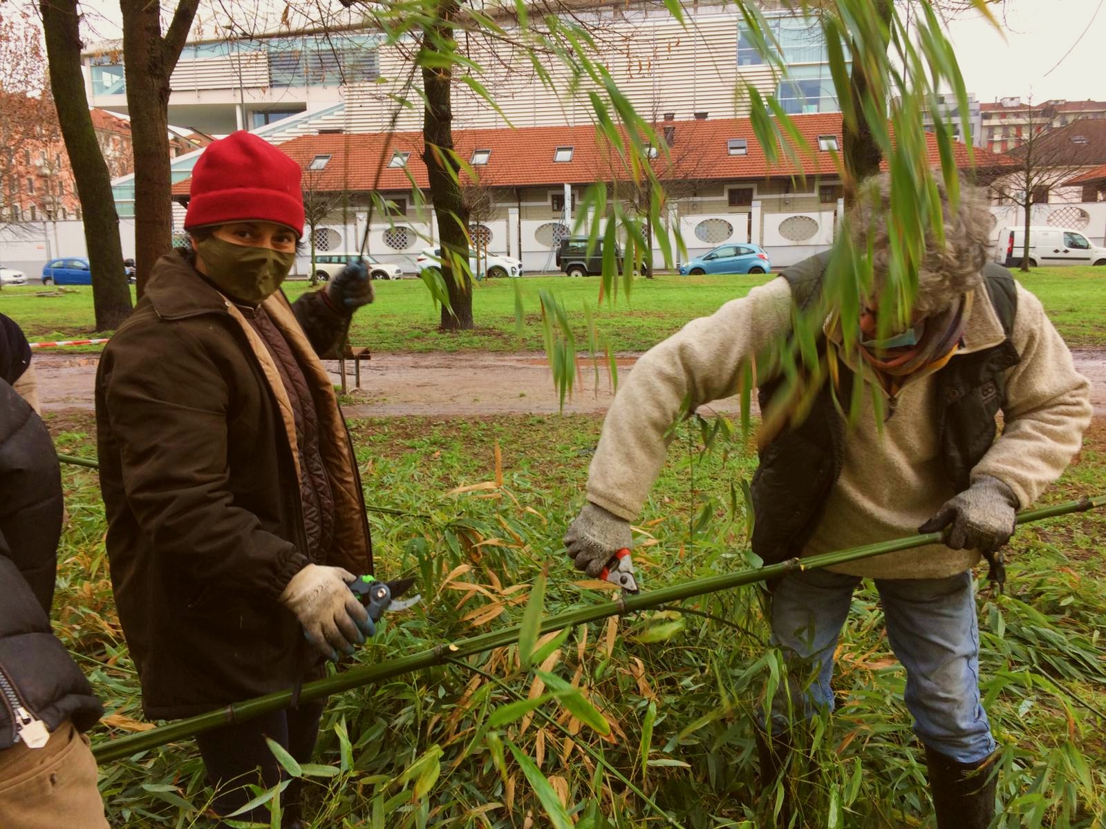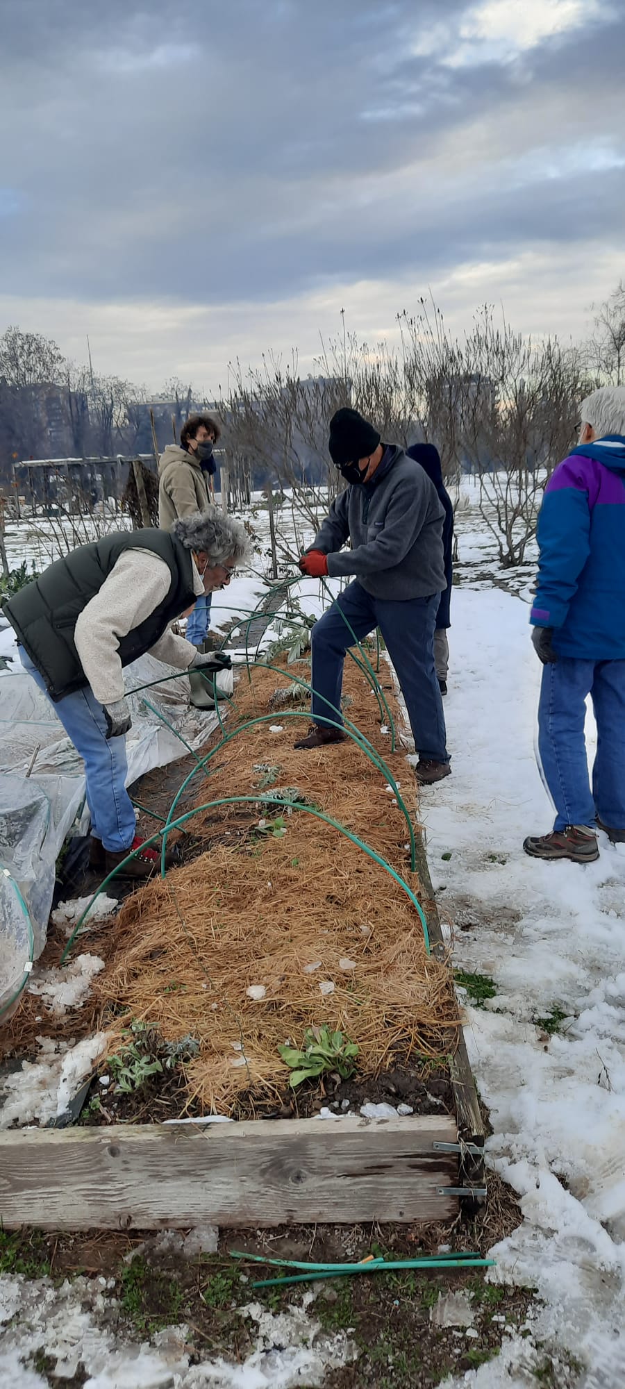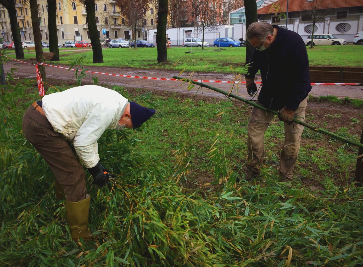 Nei giorni successivi il Comune ha provveduto a tagliare quelle danneggiate e l’Associazione si è offerta di affrontare, con il lavoro di una ventina di volontari, la sfrondatura necessaria per poterle riciclare e riutilizzare per il parco: alcune sono già diventate archetti per la copertura degli orti, che hanno sostituito quelli esistenti rovinati dalla nevicata.