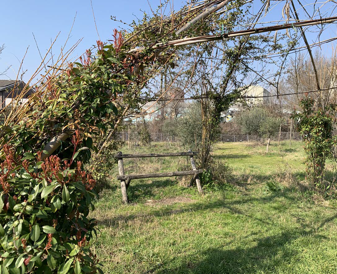 LE STANZE VERDI. Chiamiamo così le tre cupolette di piante rampicanti installate qualche anno fa vicino all’ingresso nel parco da via Argelati. L’idea era creare spazi ombreggiati dove potersi sedere perché tutte le panchine del parco sono invece sotto il sole. Per resistere al forte vento durante i temporali sempre più frequenti, abbiamo rinforzato i telai di sostegno utilizzando anche con canne di bambù. Purtroppo due anni fa le rampicanti sono state aggredite dalla Popillia Japonica e, l’estate scorsa, la siccità ha decimato le superstiti. Nei primi mesi di quest’anno impianteremo nuovi rampicanti per le stanze verdi.